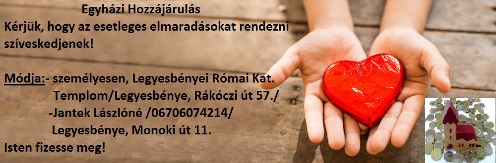 Az egyházi hozzájárulásokat az év minden napján várjuk!