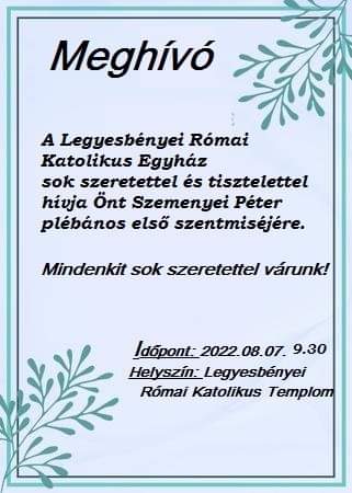 Facebook oldalunk: facebook.com/Legyesbényei-Római-Katolikus-Egyház-100875218068726