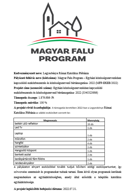 Facebook oldalunk: facebook.com/Legyesbényei-Római-Katolikus-Egyház-100875218068726