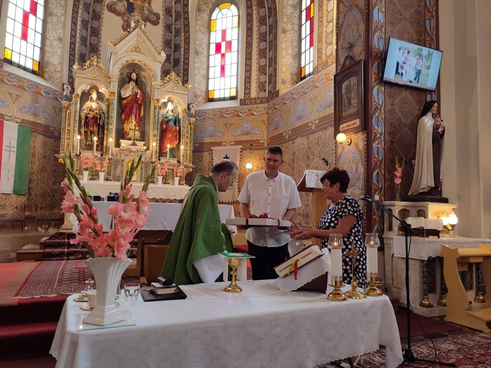 Vasárnap, július 31-én búcsút vettünk atyától, és megköszöntük áldozatos munkáját, ezt a több, mint negyed évszázados szolgálatot. Köszönjük, hogy a keresztség szentségének kiszolgáltatásával sok-sok gyermeket a legyesbényei egyház tagjai közé vezetett. Közvetítette felénk a jó Isten irgalmas szeretetét a szentségek kiszolgáltatása által. Nincs is olyan katolikus család Legyesbényén, aki ne igényelte volna valamilyen egyházi szolgálat keretében atya szolgálatát. Szentmiséi, szentbeszédei segítettek, lelki épülést adtak, hogy életünket a mennybe vezető úton járhassuk.